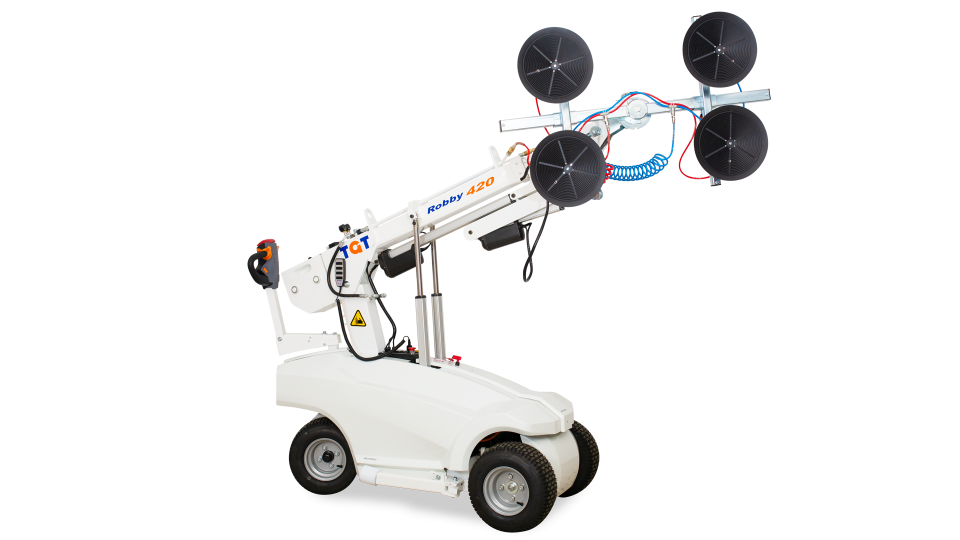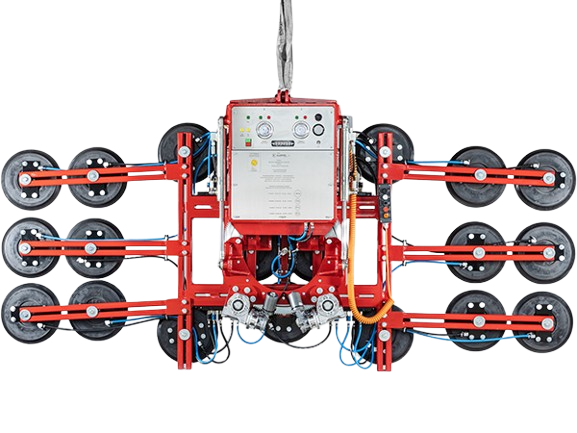 Co-designed by Hird, Wienold & Kappel, this cutting edge machine is capable of lifting 500kg up to 7.9m in an overhead position. Fully automated via radio remote control (vacuum, 360o rotation, 90o tilt, lateral side tilt + / - 10o)